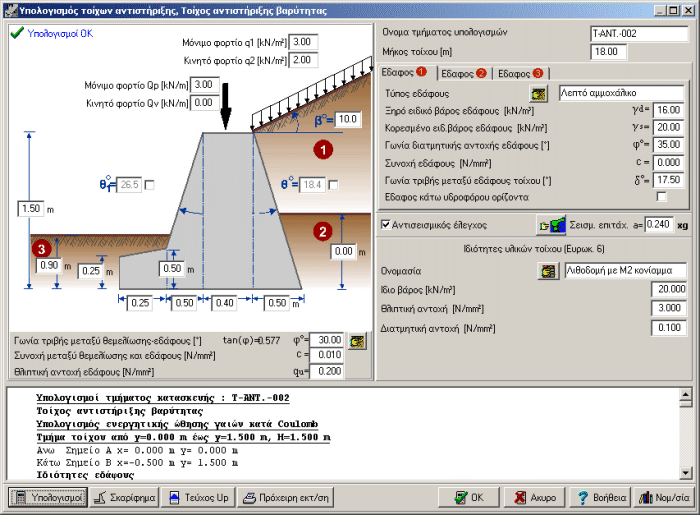 Παραδείγματα Διαστασιολόγησης Τοίχων Αντιστήριξης