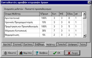 από το πρόγραμμα οι κατάλληλοι συντελεστές